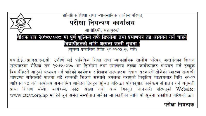 CTEVT Full Paying Notice